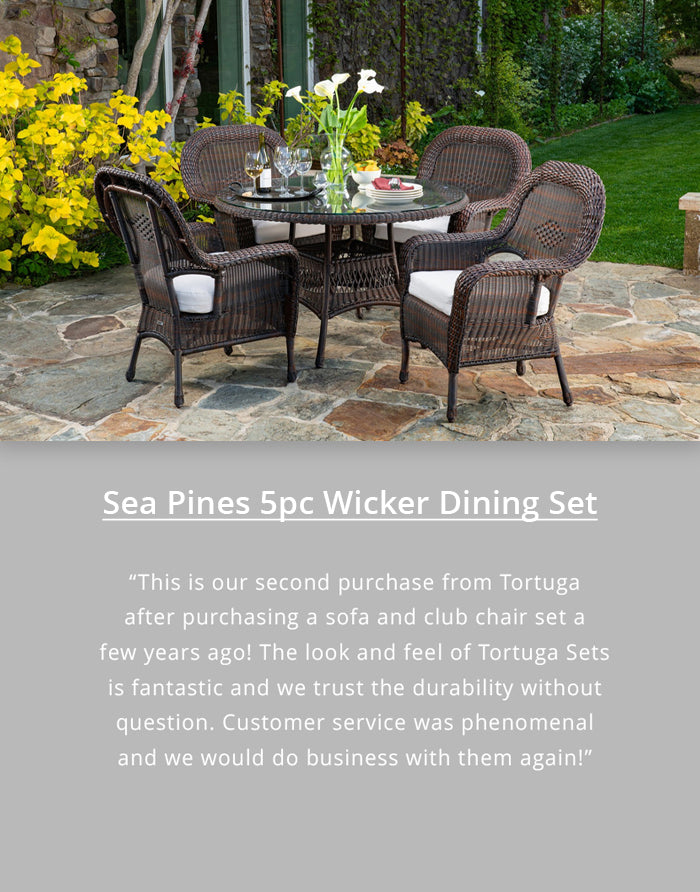 You'll find coated metal seating, wicker dining sets, fire tables, teak bar sets, and much more all designed to provide comfort while taking style to the next level. Tortuga Outdoor furniture is crafted from the highest quality materials, so it stands up to changing climates year after year. With our furniture, we can do so much more than just furnish your outdoor space - we can outfit it from head to toe.