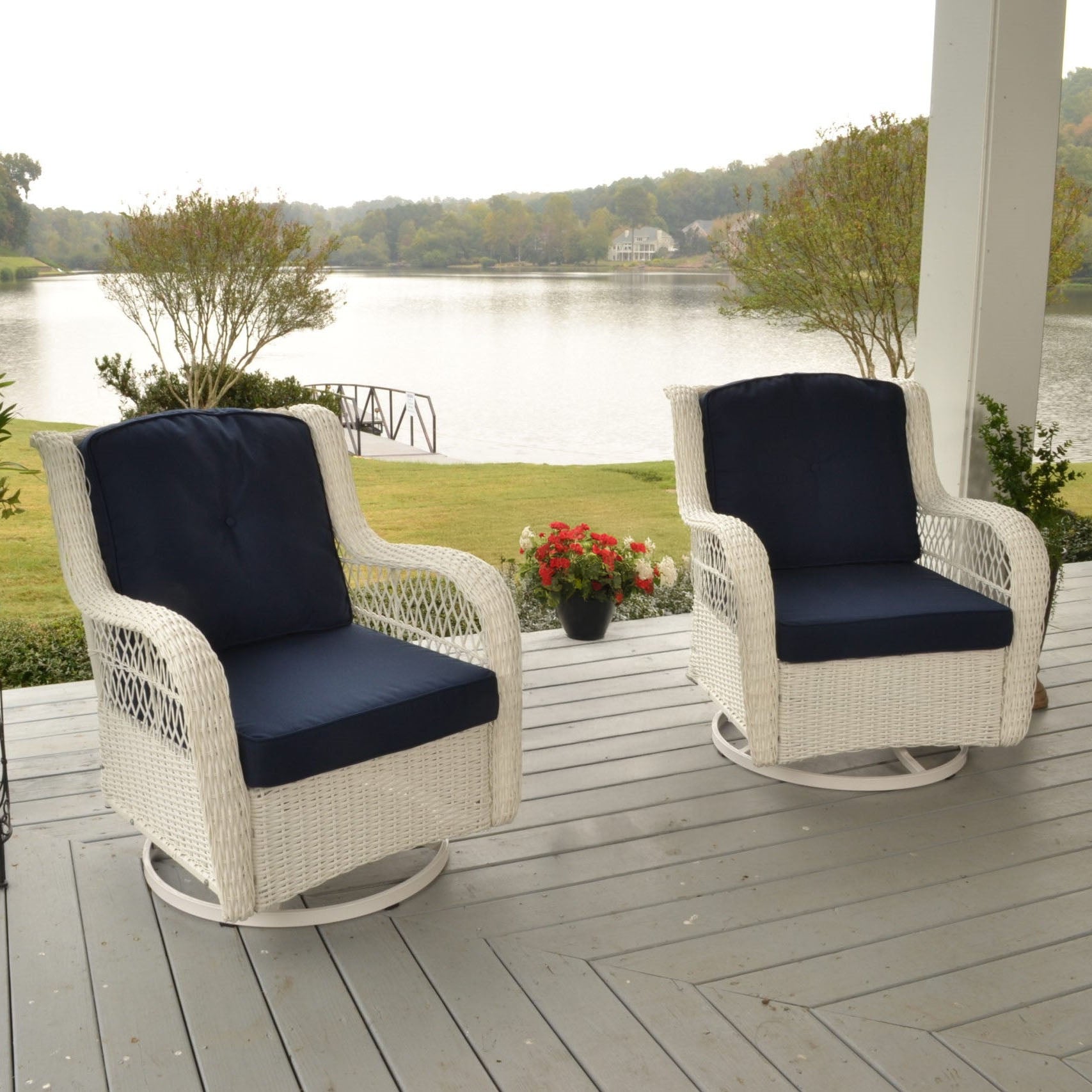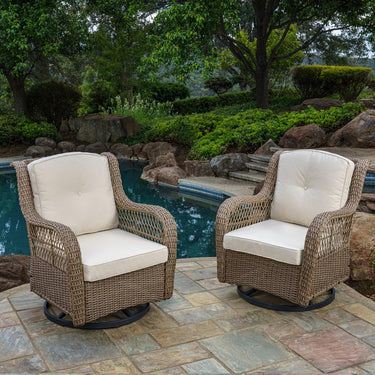 - Includes 2 swivel glider chairs and cushions (throw pillow is not included)