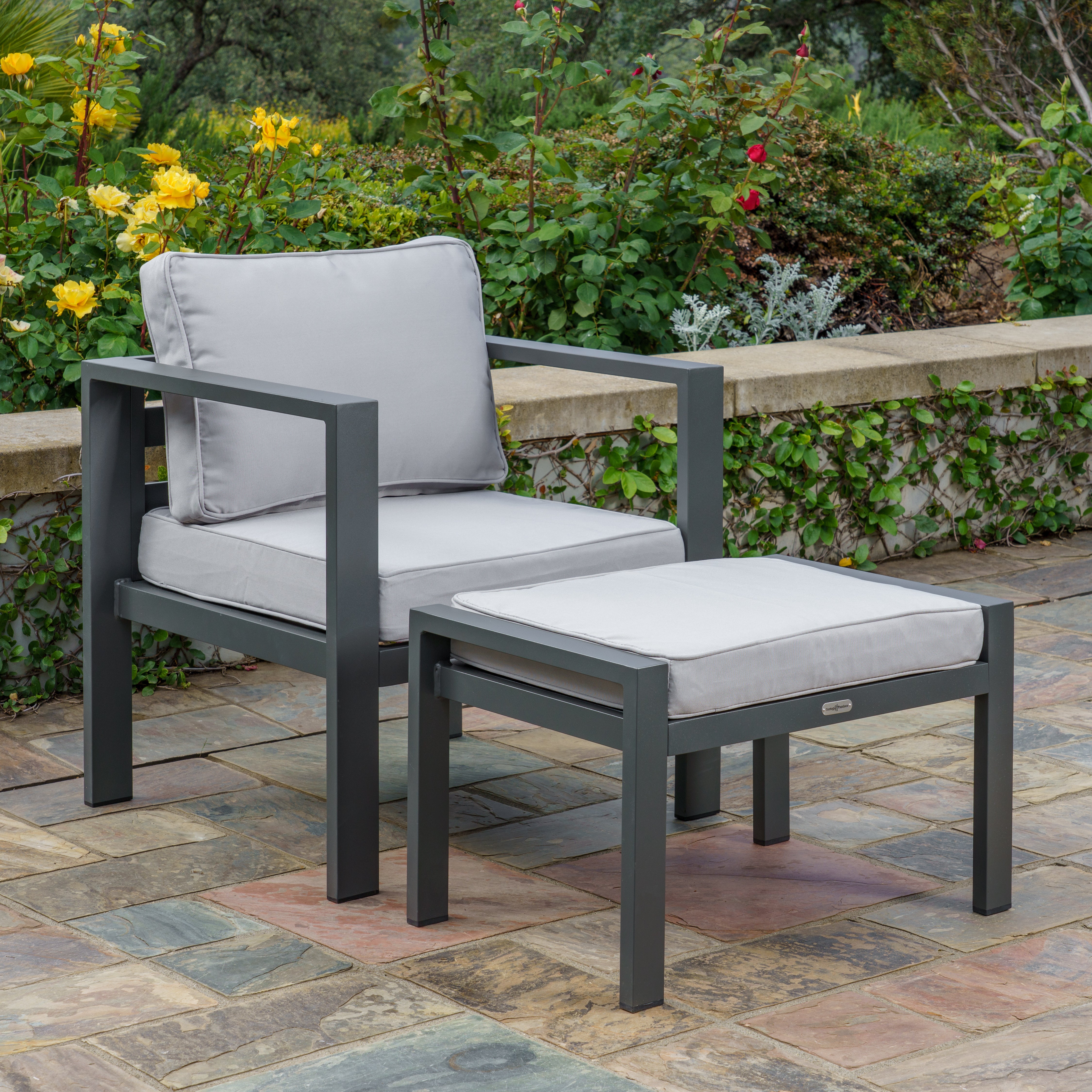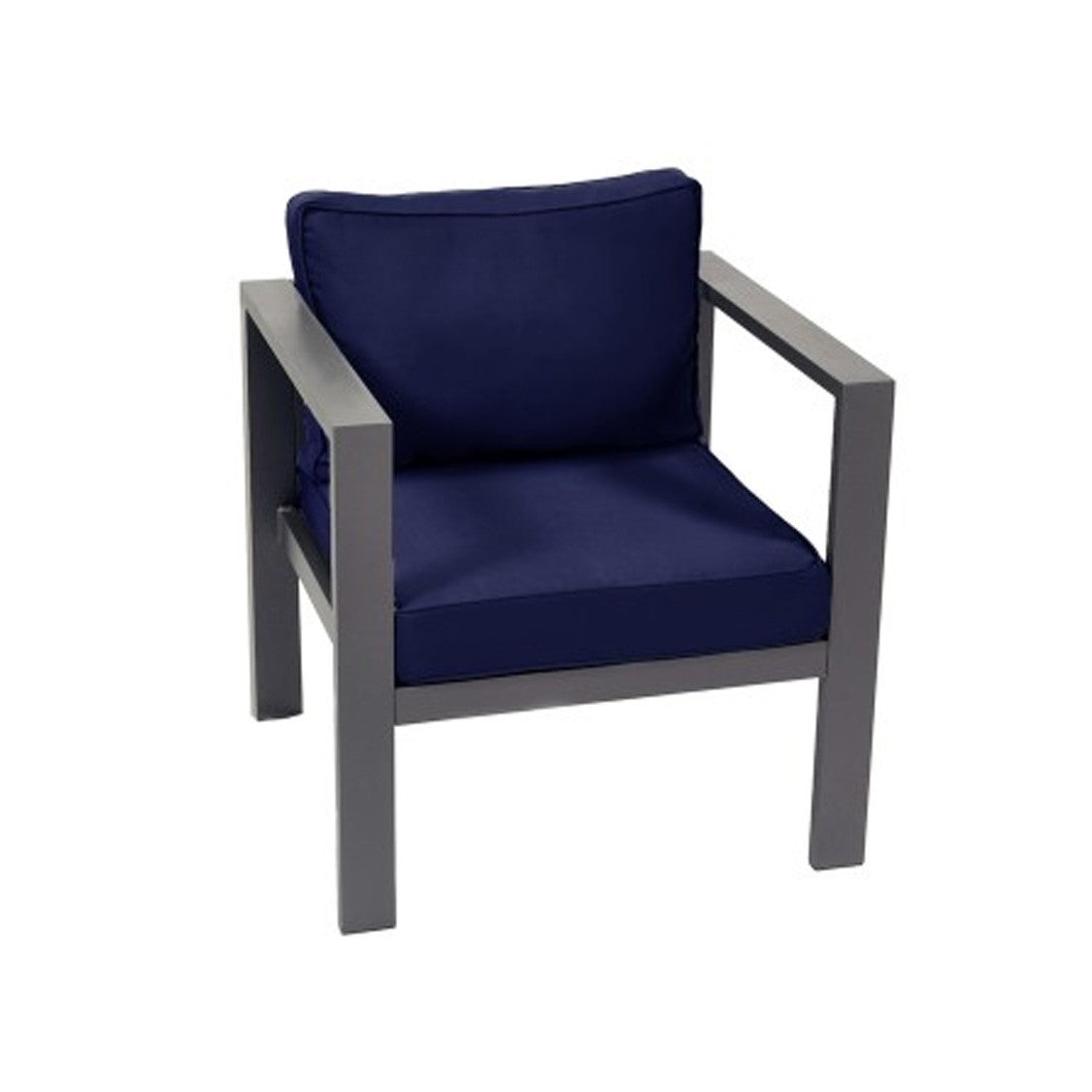 This modern patio chair from the Lakeview collection will seamlessly compliment any decor. Made from powder-coated aluminum, weather-resistant fabric, and poly lumber, providing you with the versatility and durability that's expected from the Tortuga Outdoor brand.